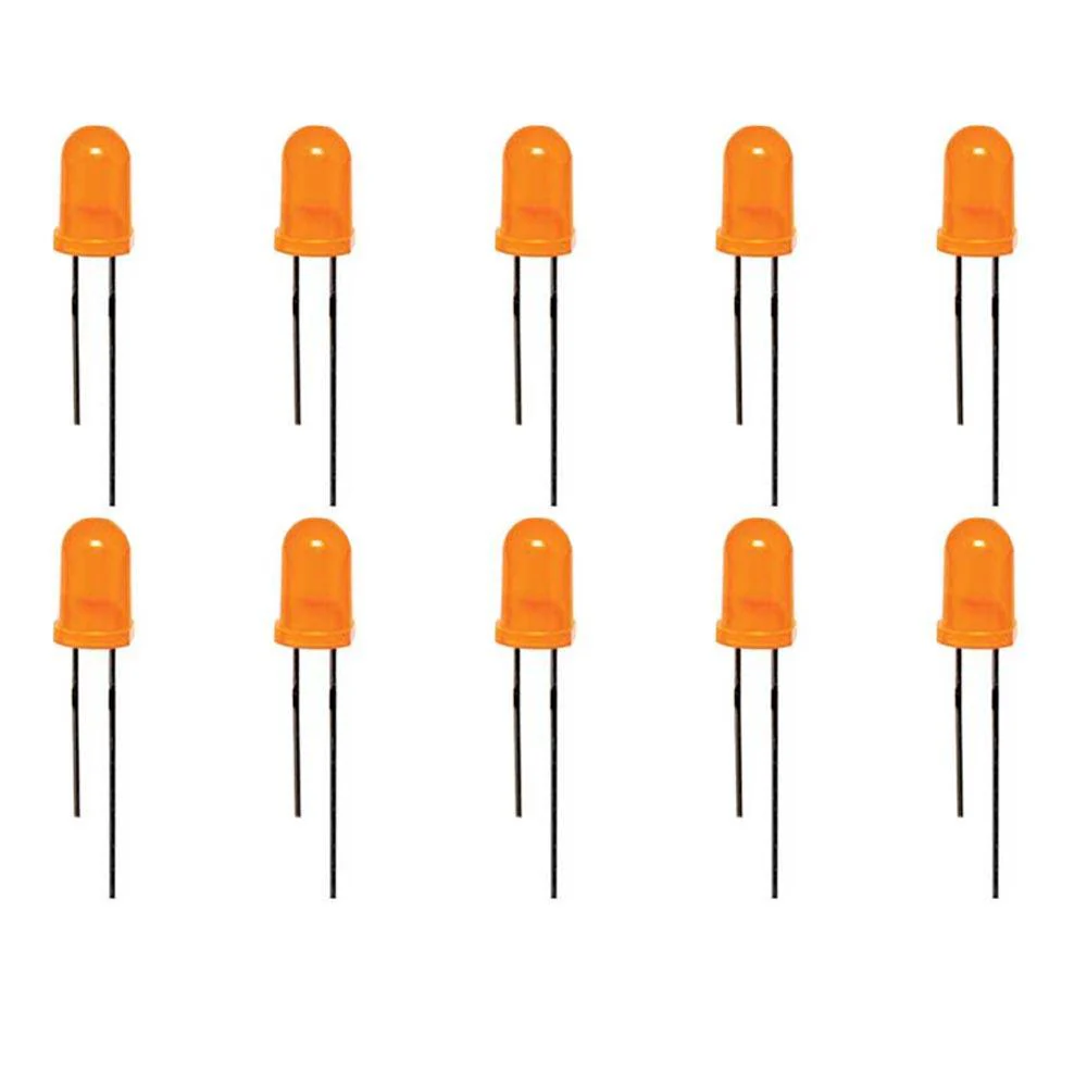 An Orange light-emitting diode (LED) is a semiconductor light source. LED’s are used as indicator lamps in many devices and are increasingly used for other lighting. It looks like a white led and illuminate’s blue light. When a light-emitting diode is switched on, electrons are able to recombine with holes within the device, releasing energy in the form of photons. This effect is called electroluminescence and the colour of the light (corresponding to the energy of the photon) is determined by the energy bandgap of the semiconductor.